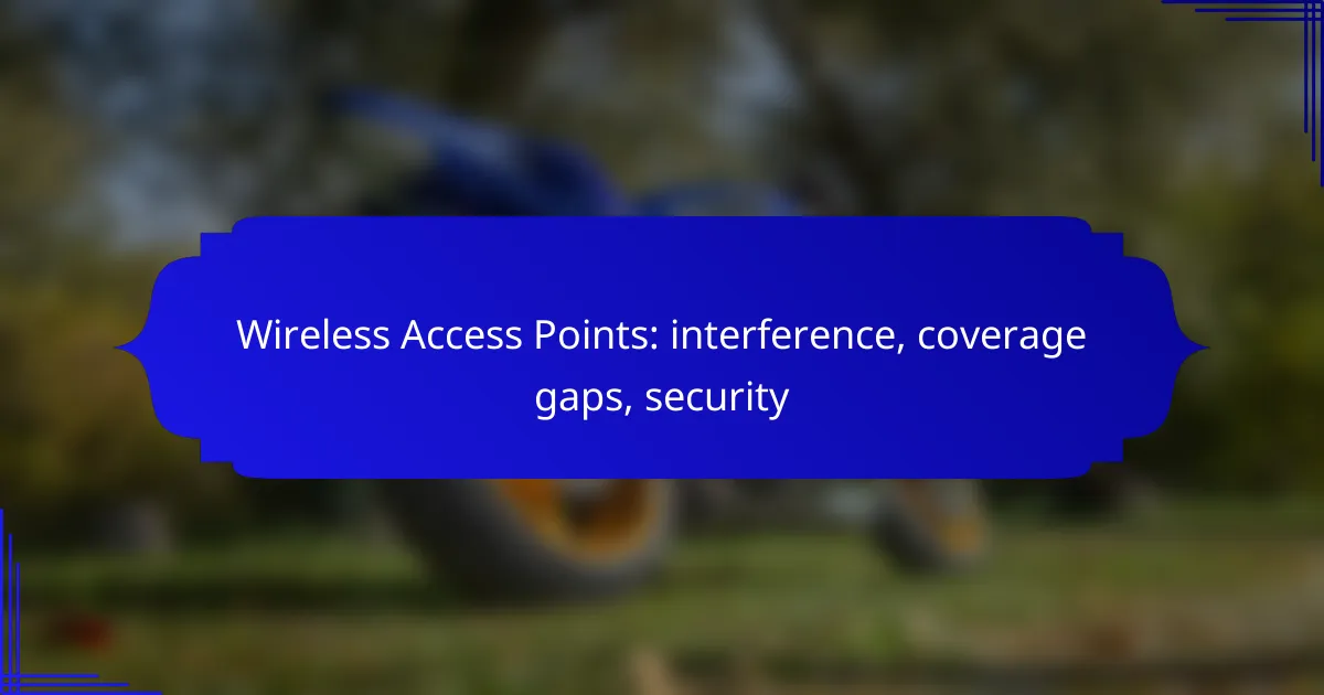 Common interference issues in wireless access points include signal overlap from neighboring networks, physical obstructions like walls and furniture, and electronic devices causing radio frequency interference. Each of these factors can significantly degrade the performance and reliability of wireless connections.